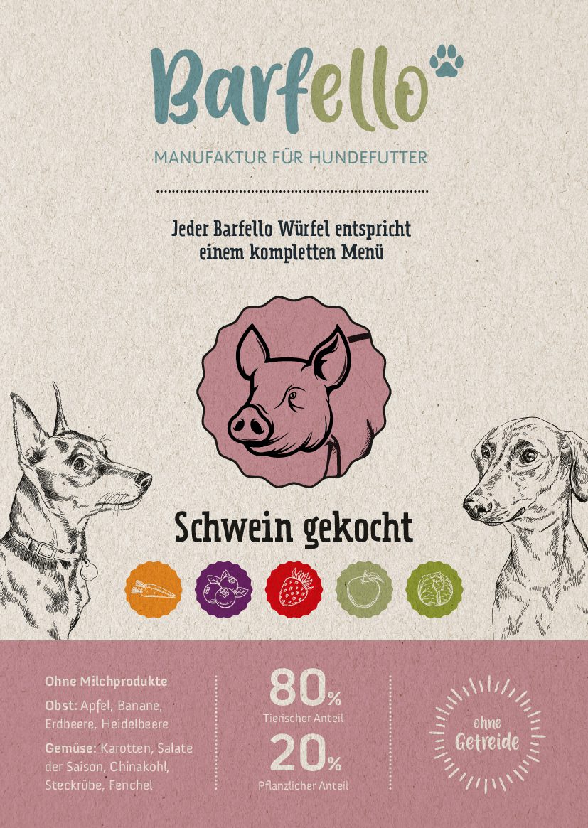 Die Zusammenstellung eines artgerechten Barf Menüs ist mit einem deutlichen Aufwand verbunden. Deswegen stellt sich Barfello für euch stundenlang in die Küche, stellt frisches Knochenmus her, schneidet und portioniert Fleisch, blutige Innereien, Pansen und frisches Obst und Gemüse.